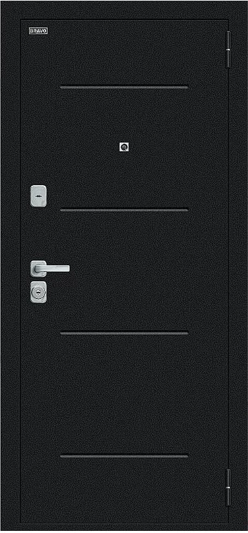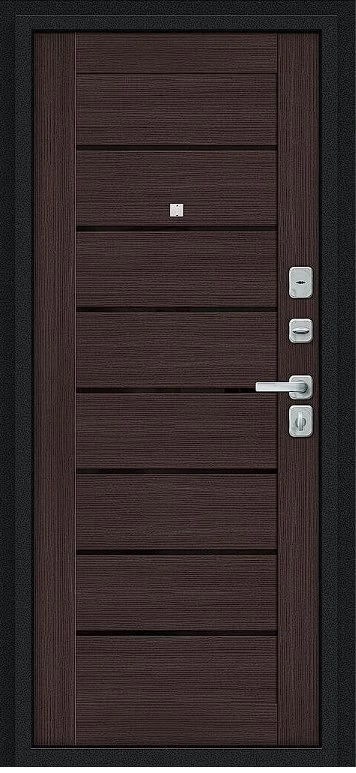 Надежная входная Дверь Браво Техно/BChrome Букле черное/Wenge Melinga премиум класса по цене 34 507 руб. Большая толщина стали защитит от проникновения в ваш дом, квартиру или коттедж. Используется очень качественная фурнитура: замки, цилиндры, ручки, защелки. Покрытие и отделка двери изготовлено под внимательным контролем производителя. Дверь имеет долгий срок службы и гарантию.